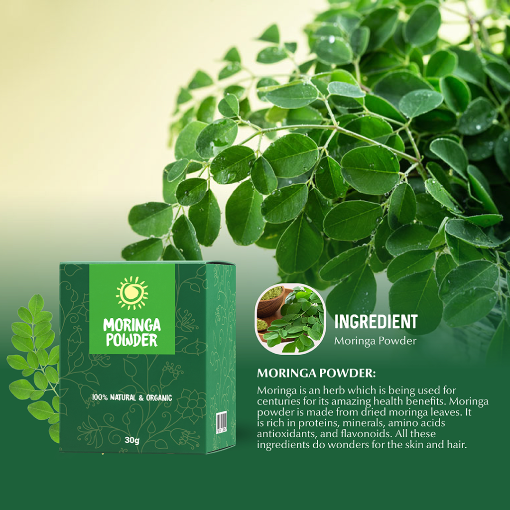 Moringa powder বা সজিনা পাতা গুঁড়া অত্যন্ত পুষ্টিকর একটি খাবার। পুষ্টি উপাদানে সমৃদ্ধ থাকায় সজিনা গাছকে “মিরাকেল ট্রি” এবং এর পাতাকে বলা হয় “সুপার ফুড”। এতে আছে পর্যাপ্ত পরিমাণে আয়রন, জিংক, আয়োডিন, ভিটামিন বি 9, ভিটামিন এ সহ দেহের জন্য উপকারী অন্যান্য ভিটামিন ও খনিজ উপাদান। দেহের জন্য প্রয়োজনীয় সকল অ্যামিনো এসিড পাওয়া যায় এই জাদুকরী গুণসম্পন্ন ভেষজে।